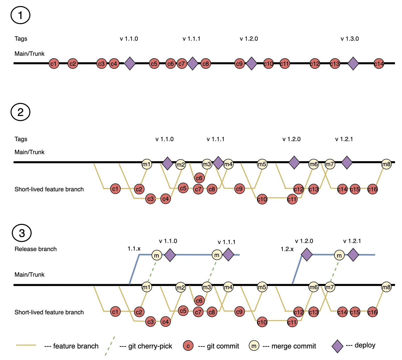 3 - with feature branches and release branches