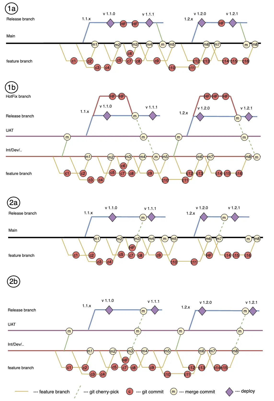 It is important to note that the approach is flexible, and hotfixes can occur both in separate branches and in the most suitable branches for this purpose.