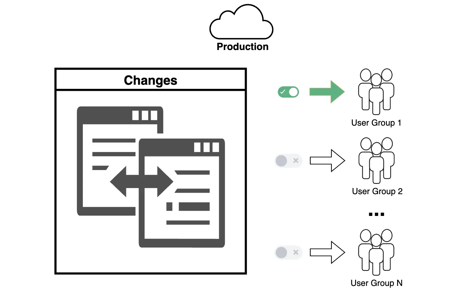 Example: Instead of rolling out a new feature to the entire organization at once, you first enable it for a small group of users, test its stability and performance, collect data and feedback, address any identified issues, and then gradually scale up.